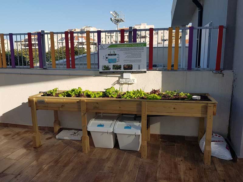 במרפסת בית הספר הוקם מתחם ייחודי המשלב סוגים שונים של חקלאות מתקדמת: